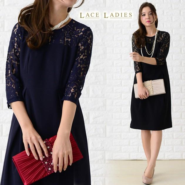 レース袖 膝丈 ワンピース パーティードレス ブラック ネイビー 結婚式 披露宴 お呼ばれ 長袖 袖付き 袖あり フォーマル 上品 膝下丈 Szp23 レースレディース 通販 Yahoo ショッピング